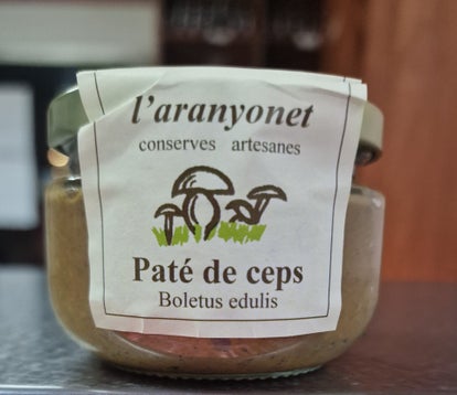 Delicioso paté de de setas Boletus Edulis elaborado con las setas que crecen el el pirineo catalan. Muy apreciados en la cocina y utilizado para hacer risottos, pastas y cremas. Tiene un bajo contenido en grasas y hidratos de carbono digeribles, con alto contenido en proteinas, vitaminas, minerales y fibra dietetica.